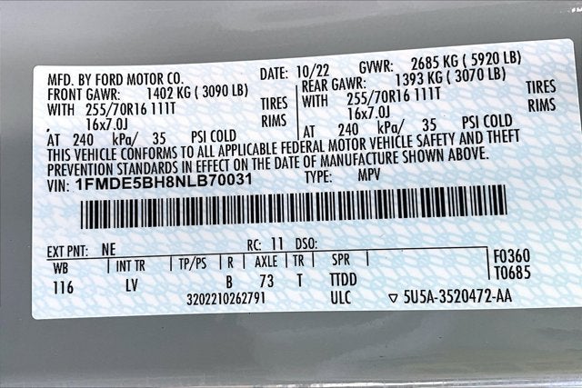 - Gross Axle Wt Rating - Rear (lbs): 3070