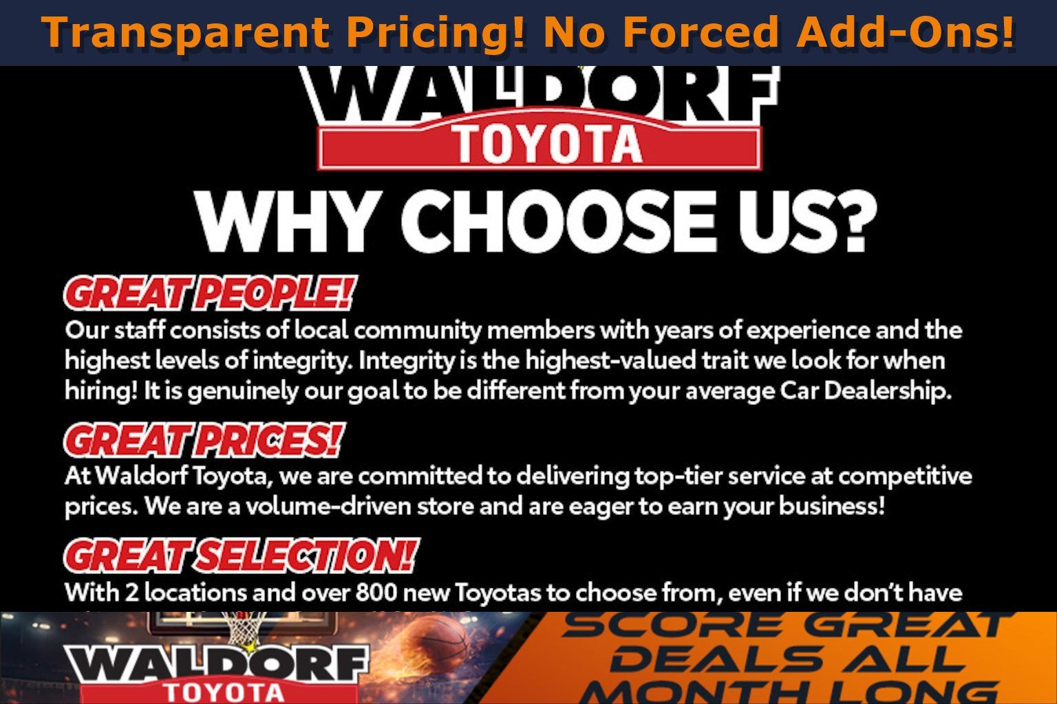 ***FREE 6MO/6K MILE TOYOTA LIMITED POWERTRAIN WARRANTY INCLUDED!!!*** Each qualifying pre-owned vehicle we sell at Waldorf Toyota comes with a 6 month/6k mile Limited Powertrain Warranty. We have partnered with Toyota Financial Services to offer this at no charge to our customers. Coverage comes with Roadside Assistance, Substitute Transportation, and Travel Protection Benefits. Eligible on most makes and models that are 15 years old and newer with less than 200k miles. See dealer for coverage details and exclusions. Remaining manufacturer warranty and Certified Warranty supersedes this additional coverage when applicable.