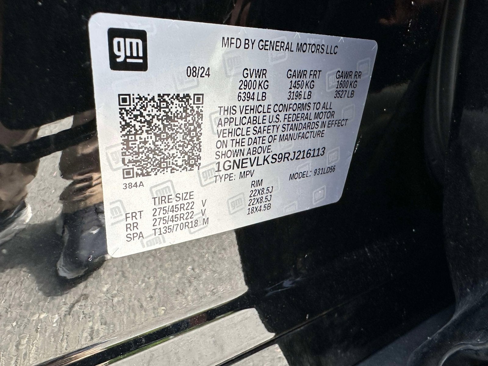 - Tires, 275/45R22 all-season, blackwall