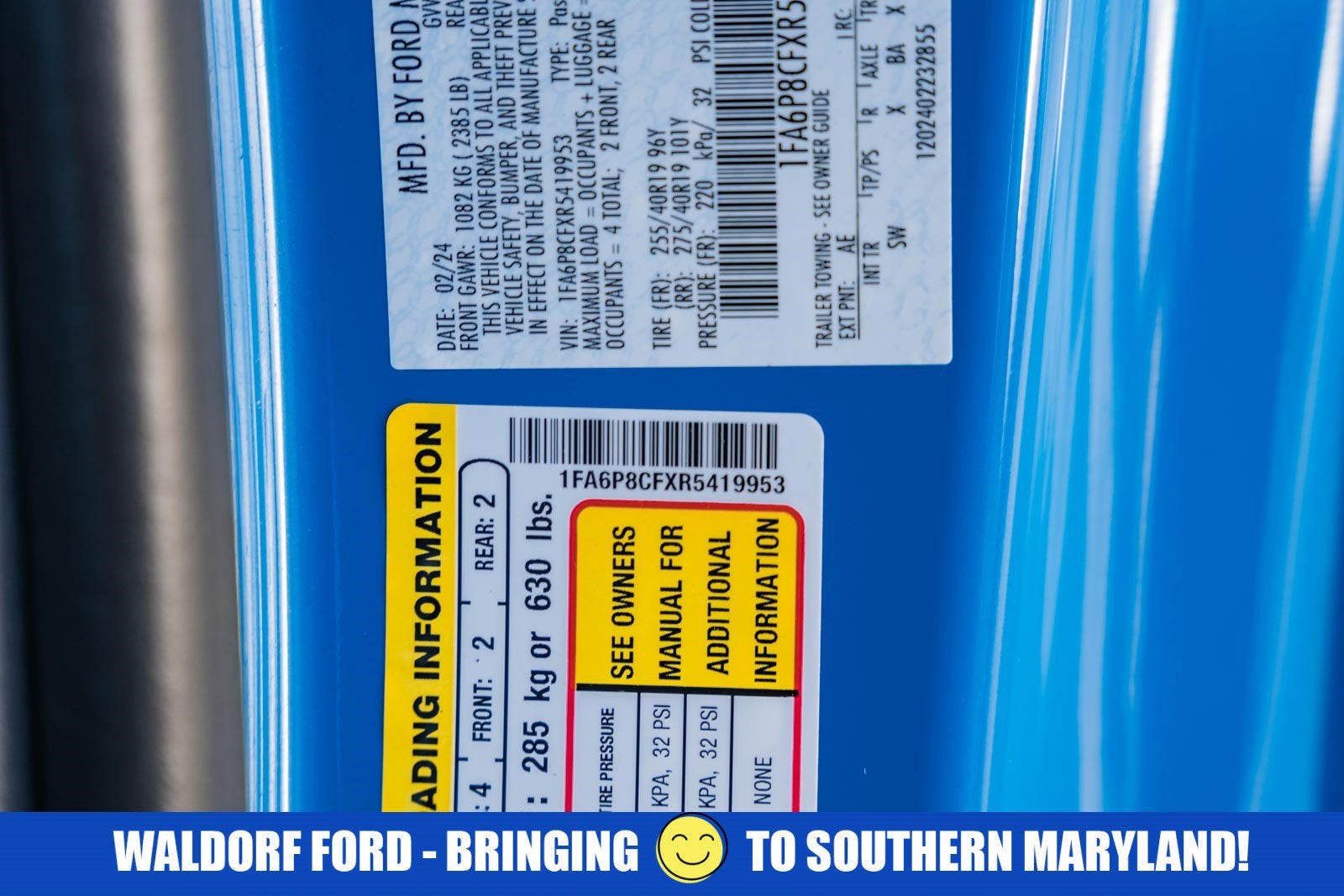 Open your door to the world of adventures with the sleek Grabber Blue Metallic 2024 Ford Mustang. The Manual 5.0L V8 Ti-VCT is built for the long haul, and packed with features such as , GT Performance Package (19" Branded Brake System w/Performance Linings, Black Painted Strut-Tower Brace, Ebony Black Grille, Electric Hand-Operated Parking Brake (Drift Brake), Front Towing Hooks, Heavy-Duty Front Springs, Performance Raised Rear Wing, Unique Chassis Tuning, Unique Stability Control, Upsized Rear Sway Bars, and Wheels: 19" x 9" Fr/19" x 9.5" Rr Carbonized), Mustang Nite Pony Package (Black GT Pony Badges, Black Mirror Caps, Headlamps w/Black Bezels, and Painted Black Roof), Mustang Nite Pony Package w/Shadow Black Paint, and RECARO Sport Seats (RECARO Leather-Trimmed Sport Seats). If you think the pictures look pretty just wait until you see it in your driveway! This Mustang is big enough to fit everything you need for your day, plus whatever else life throws at you.