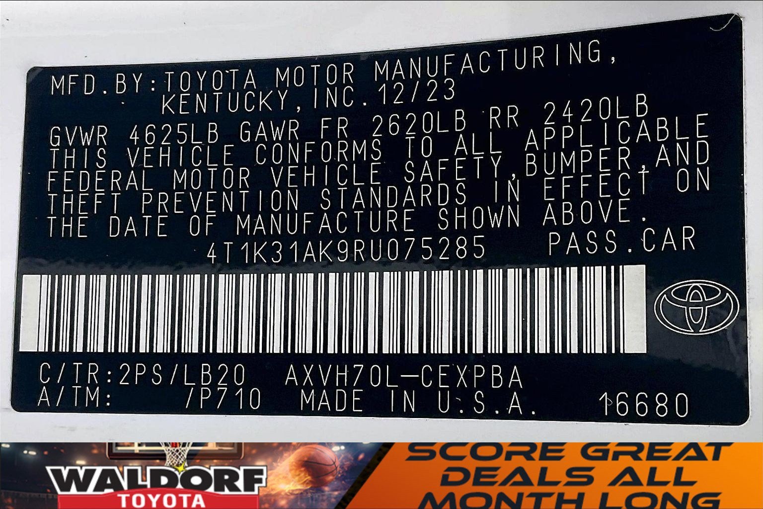 - Vehicle Name: Toyota Camry